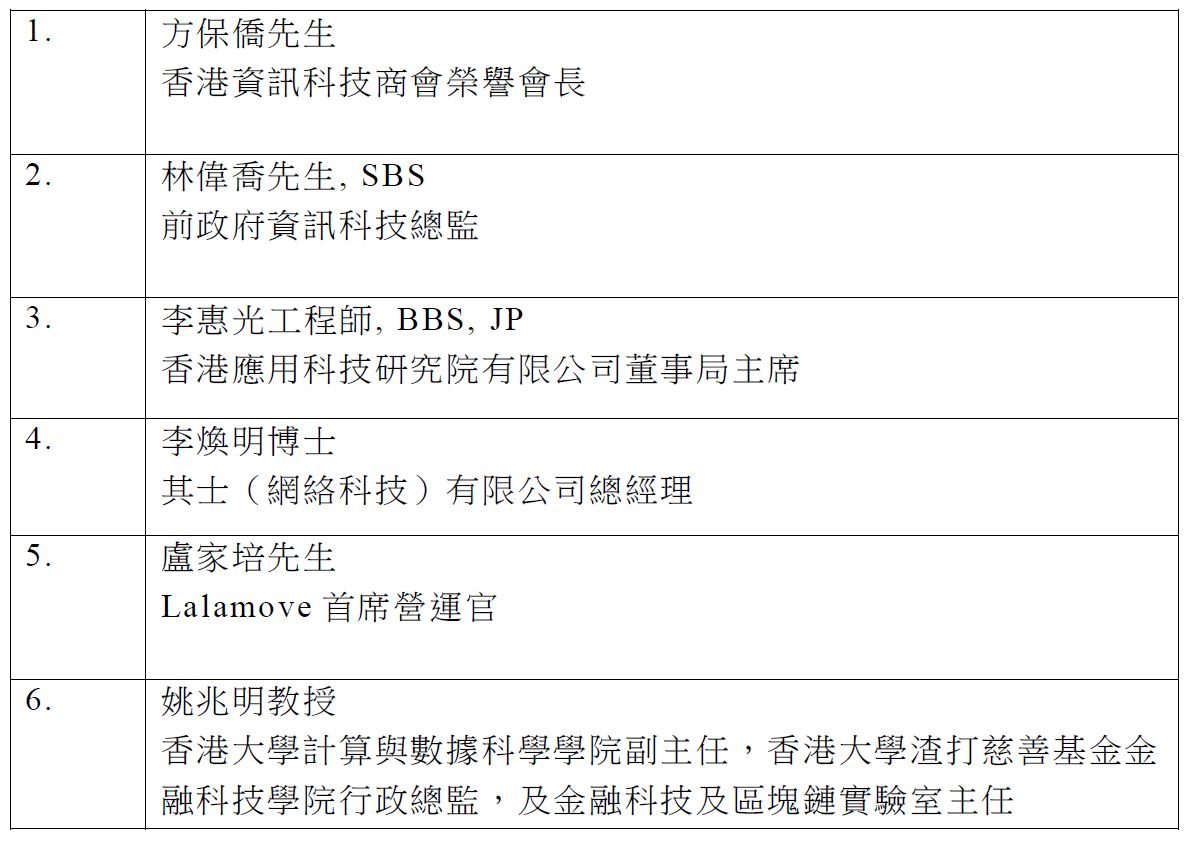 附錄:「積金易」平台專家小組名單(以英文姓氏按字母順序)