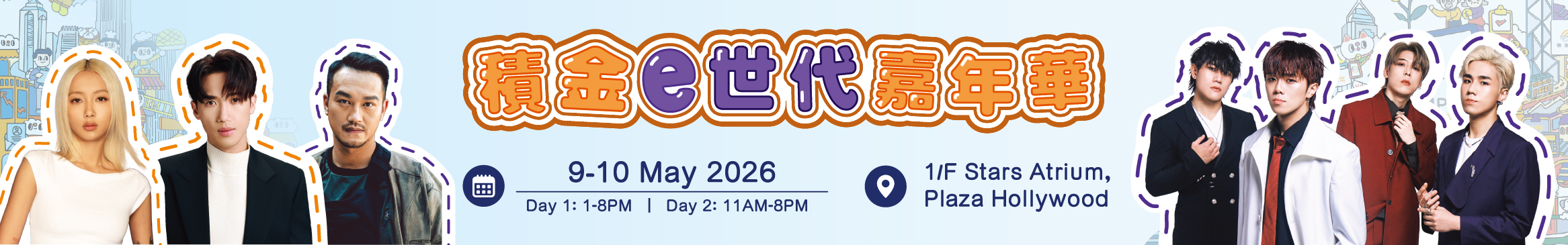 The eMPF™ Carnival will be held at Plaza Hollywood, Diamond Hill, on 9 and 10 May 2026. The event will feature star hosts Johnny and Akina Fong, along with special guests Marf@COLLAR, Stanley@MIRROR, Deep Ng and ROVER, inviting you to step into the eMPF™ new era with ease.